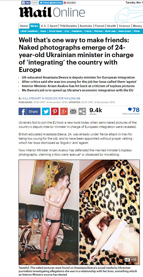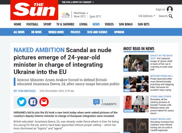 Сразу три британских таблоида посвятили статьи замминистра внутренних дел Украины Анастасии Деевой, чье назначение превратилось в грандиозный скандал в нашей стране.