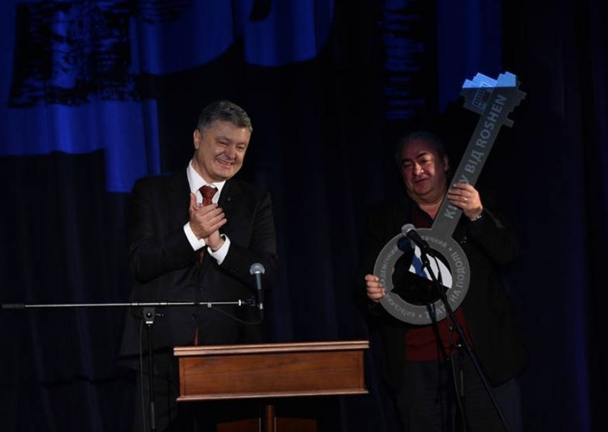 «Поздравляю всех киевлян, все театральное братство Украины, поклонников театрального искусства с открытием нового здания Театра на Подоле…Я хотел сказать, что он рождался в муках», — сказал Порошенко.