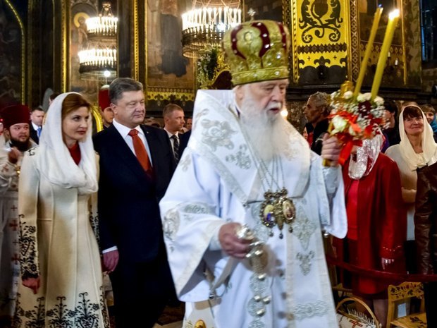 Во Владимирском кафедральном соборе Порошенко вместе с патриархом киевским и всея Руси-Украины, предстоятелем УПЦ КП Филаретом и верующими прошел крестным ходом вокруг храма. После этого он принял участие в богослужении, которое провел настоятель УПЦ КП.