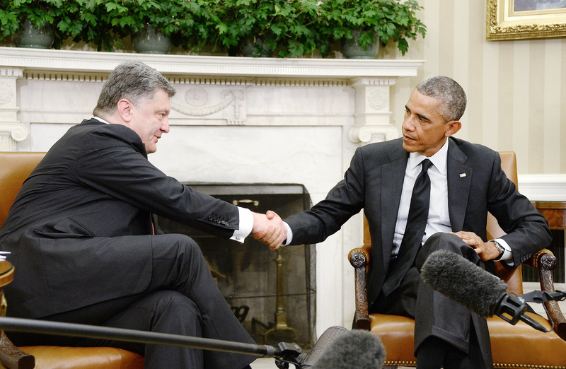 Президент Украины Петр Порошенко заявляет о достигнутой между ним и американским коллегой Бараком Обамой договоренности о предоставлении США Украине $1 млрд финансовых гарантий.