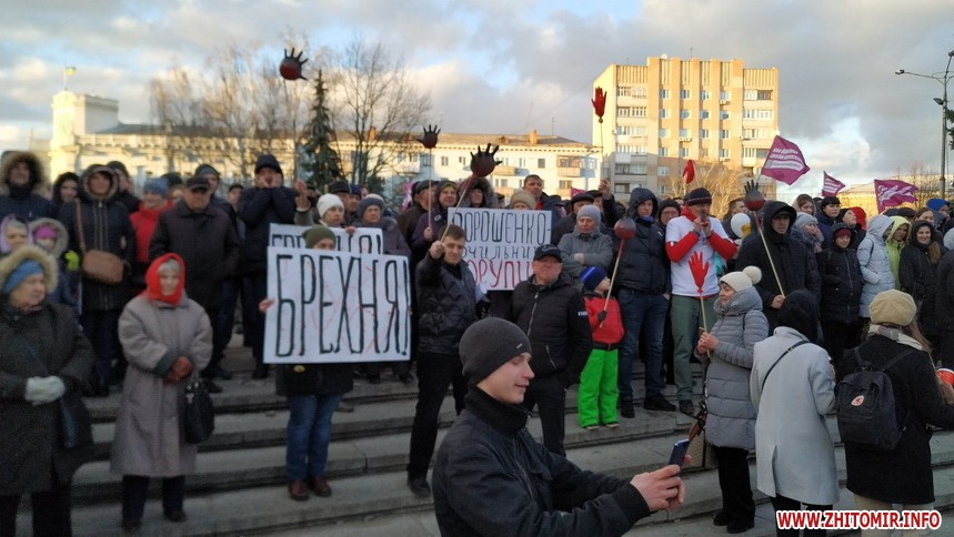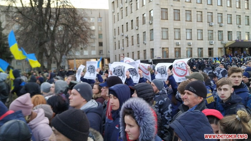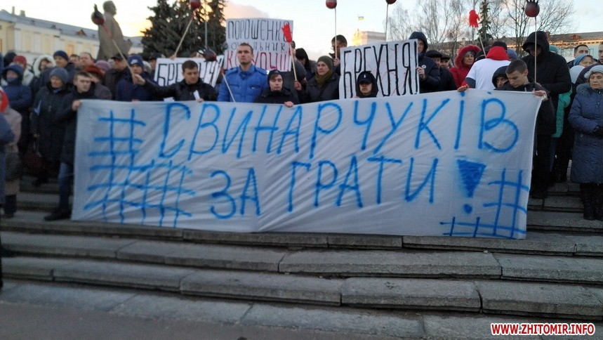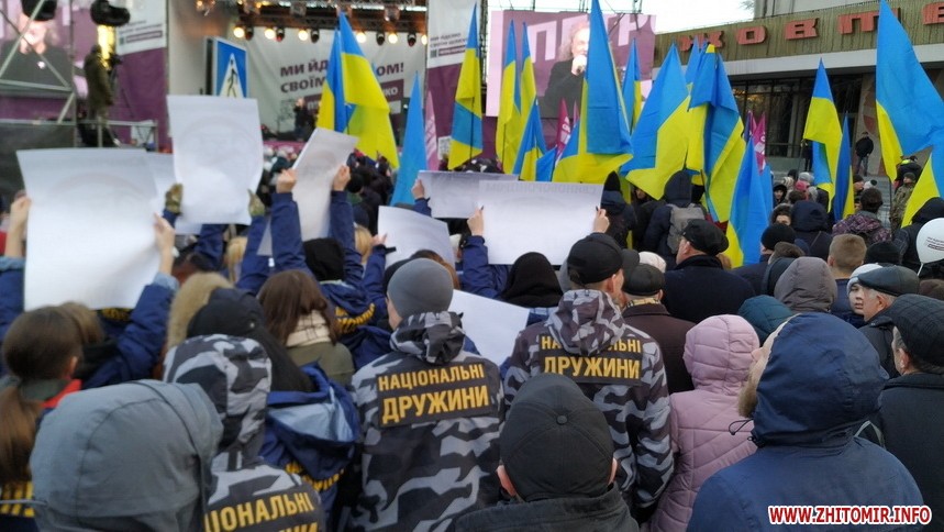 Представители «Национального корпуса» и «Нацдружин» устроили в Житомире очередную акцию во время выступления президента Петра Порошенко. Трансляция акции велась на канале «Нацкорпуса» в Youtube.