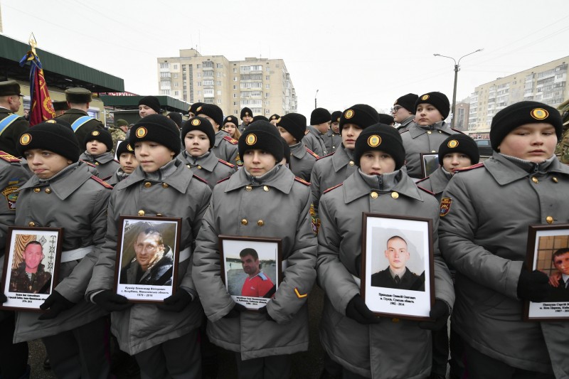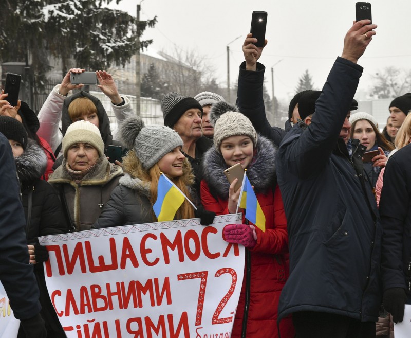 Президент пообщался с украинскими защитниками. После чего прошел вместе с ними по центральной улице к воинской части бригады. По пути следования военнослужащих с плакатами поддержки и благодарности встречали местные жители.