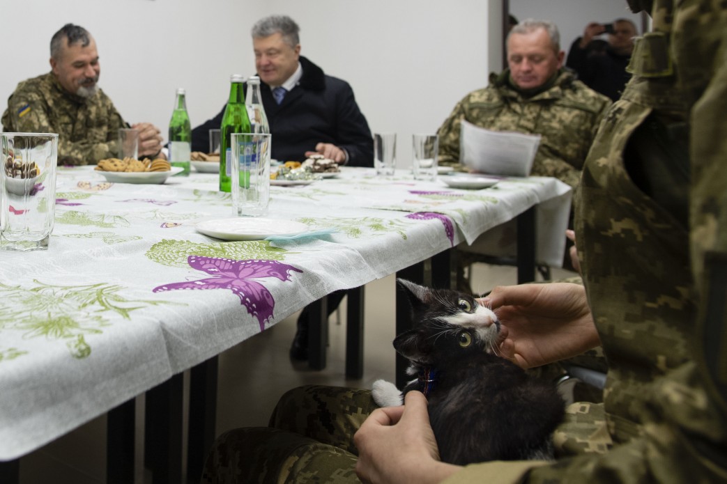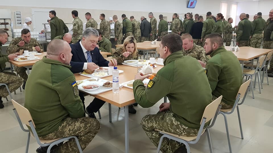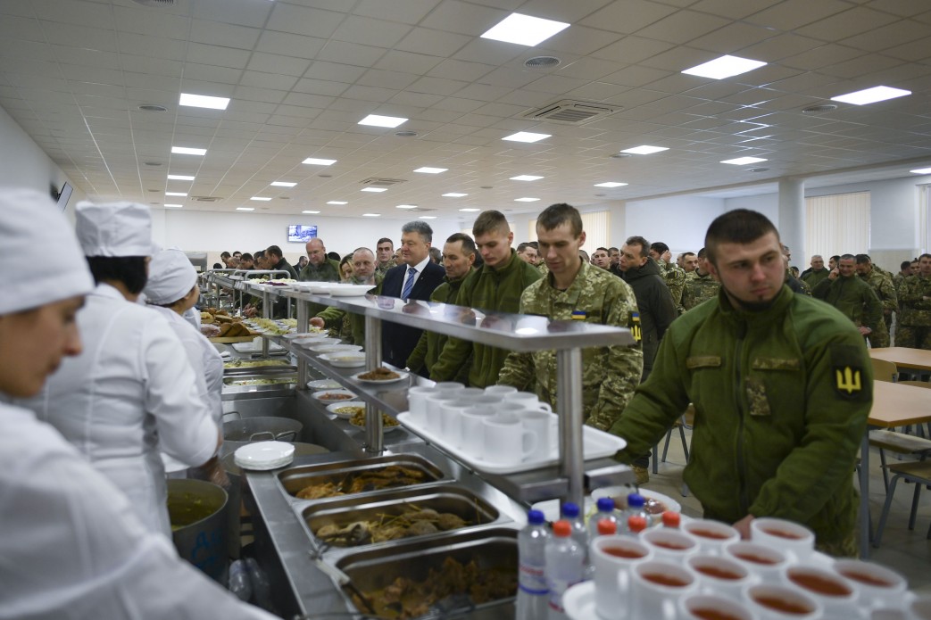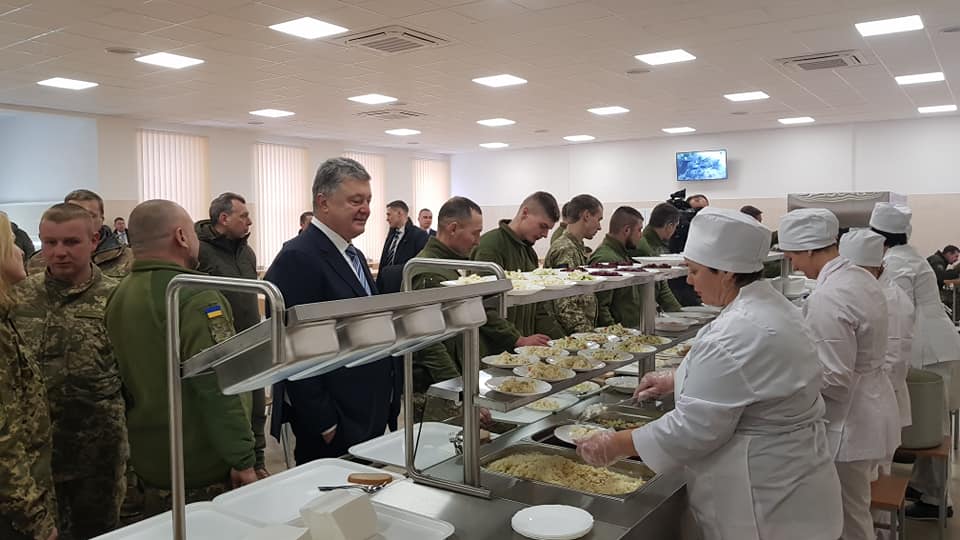 Верховный главнокомандующий Петр Порошенко пообещал вместе с бойцами 72-й бригады и выстоял очередь за едой. Фото из столовой опубликовал офицер ВСУ Сергей Мисюра (Капитан Прайс).