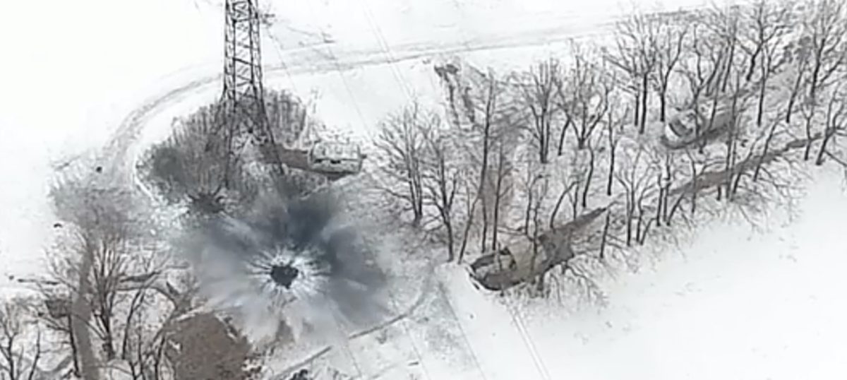 Ущерб могут приносить не только те снаряды, что прямо поражают цель, но и те, что разрываются поблизости от цели. Так на ролике видно, как осколки повреждают технику боевиков. Там же можно увидеть испуганного террориста.