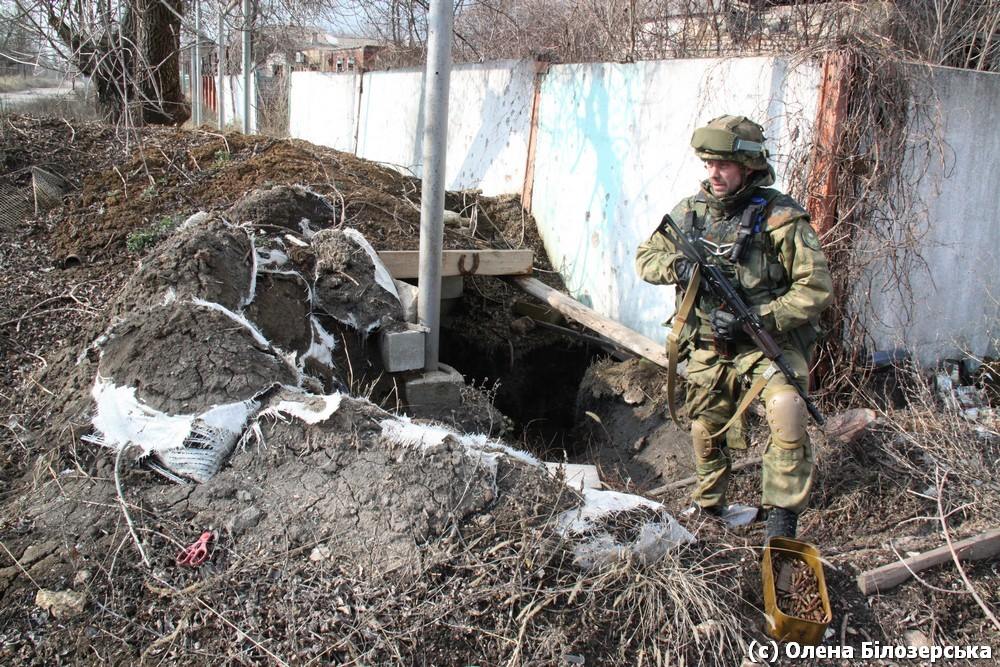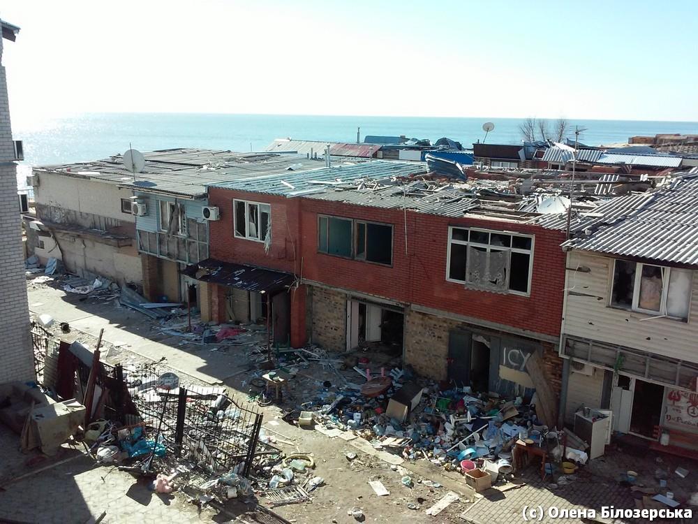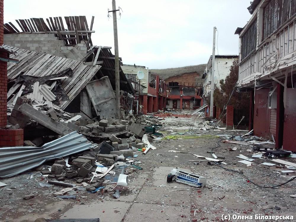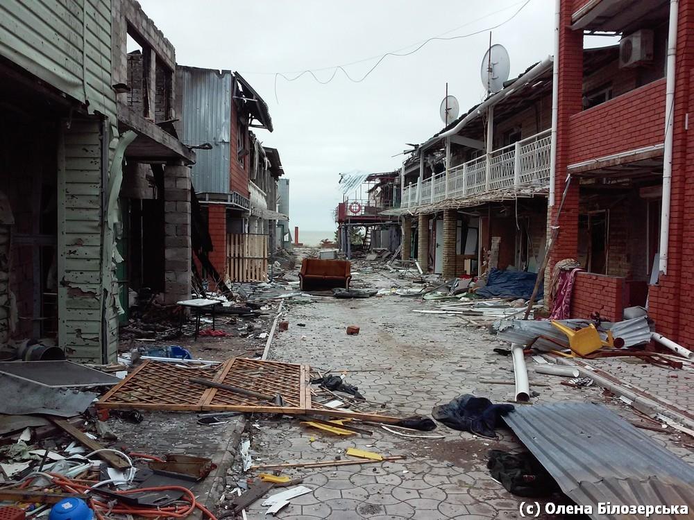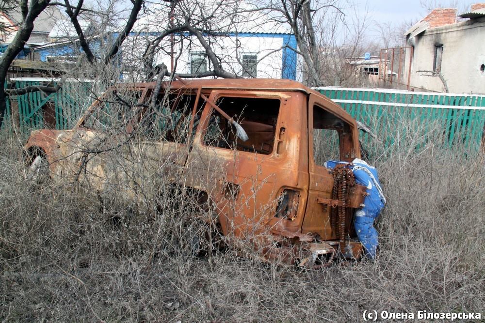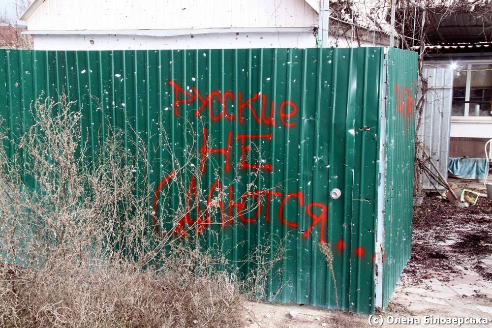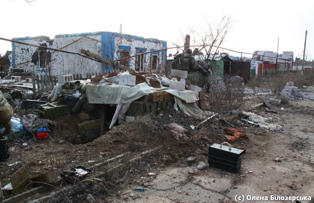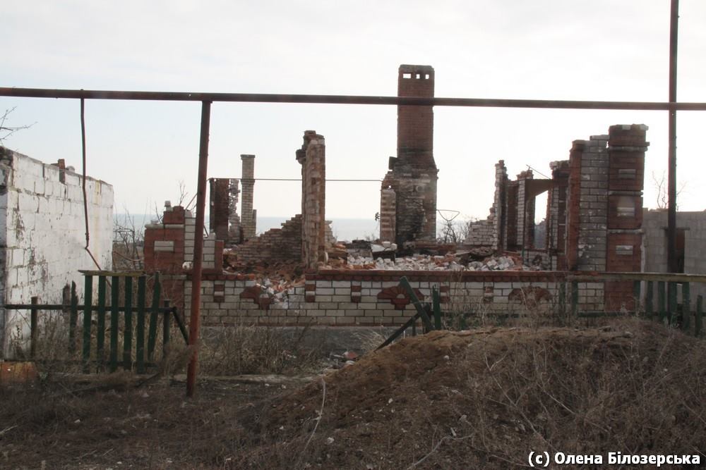 «Пески разрушены не меньше, но в Песках есть люди. А здесь ни души — вообще. Нет людей, нет даже собак и кошек. Только птички поют. С асфальта торчат хвосты 80-х и 120-х. Стоят минные ловушки — не в каждом доме, конечно, но хватает. Блиндажи и дзоты, заброшенные врагом. И пахнет морем. И еще чем-то, чем пахнет только война», — пишет она.