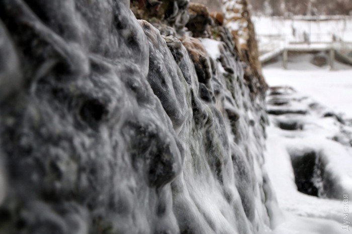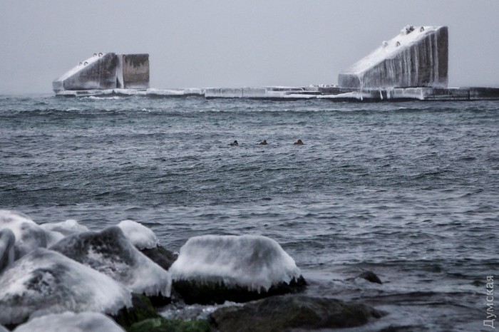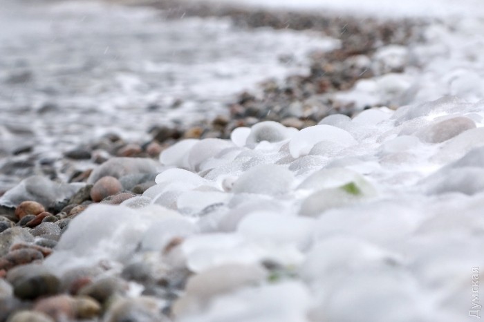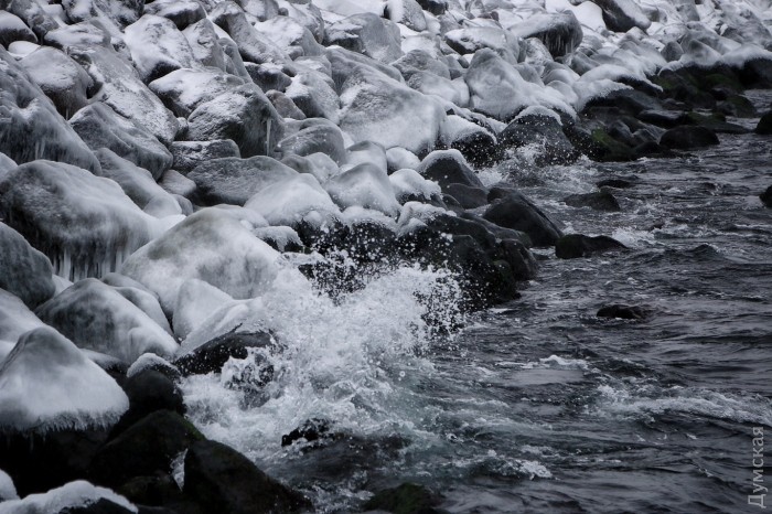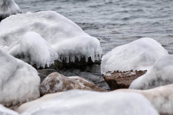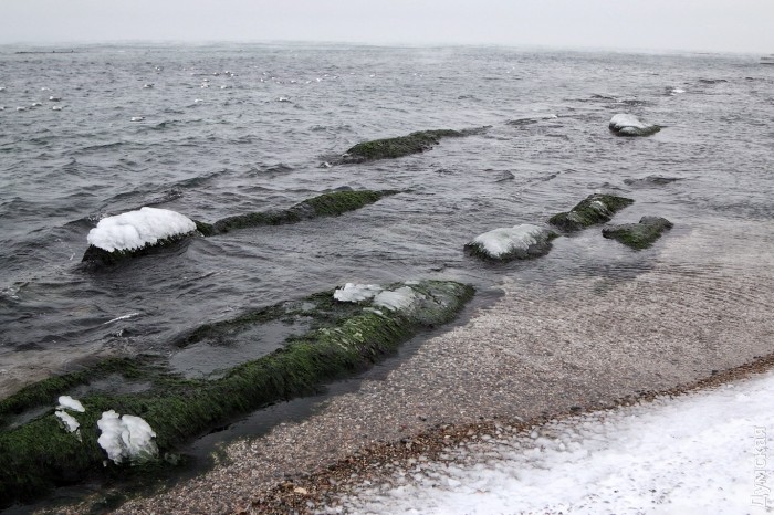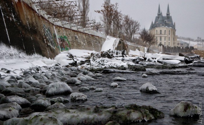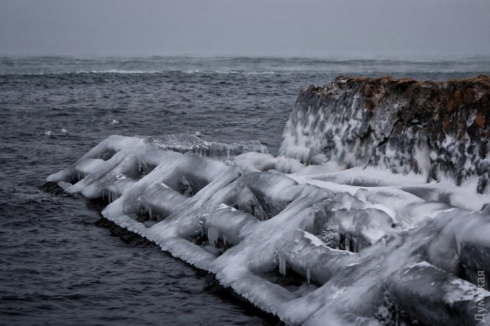 Сегодня, 7 января, в Одессе температура воздуха опустилась до минус 15 и море начинает понемногу замерзать. Пока что льдом покрывается только прибрежная часть пляжа, пирсы и буны, но если минусовая температура продержится подольше, море, к радости одесситов, покроется ледяной коркой.