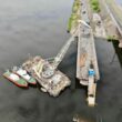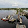 Появилось видео, как вытаскивали грузовик с обвалившегося моста в Днепропетровской области