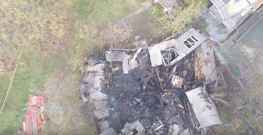 Появилось видео сгоревшего корпуса санатория в Одессе, снятое с высоты птичьего полета