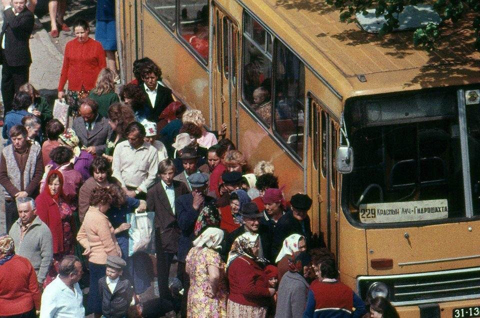 Думаю, многие читатели еще помнят эпичные скандалы и даже драки в советских трамваях и автобусах. Возникали они чаще всего всё по той же причине — борьбе за ресурс, в данном случае свободное место, плюс нередко возникали «классовые разборки». Частного автотранспорта в СССР было очень мало, и гражданам приходилось добираться на работу почти исключительно в общественном транспорте, который был постоянно перегружен (по крайней мере, в Минске было именно так). В трамваях возили полные сумки продуктов, какие-то доски и канистры, ящики с рассадой, коробки из-под обуви с чирикающими цыплятами внутри — места постоянно не хватало, из-за чего возникали скандалы и ругань, иногда доходящие до потасовок.