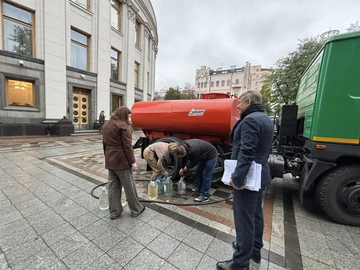 Кроме того, она отметила, что к Верховной Раде подвезли машину с технической водой для базовых нужд парламента.