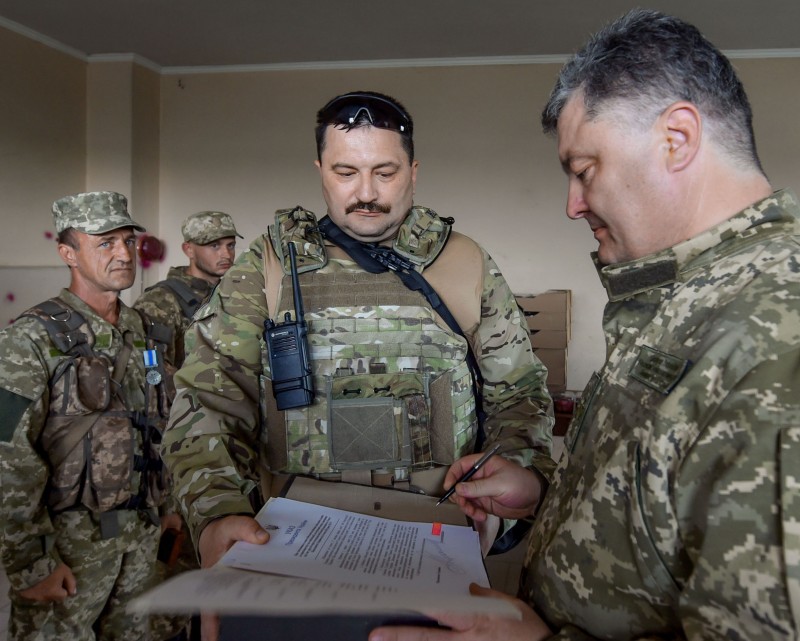 Президент Украины Петр Порошенко проинспектировал линию опорных пунктов на передовой и пообщался с военнослужащими 128-й отдельной горно-пехотной бригады Вооруженных Сил Украины. Об этом сообщает сайт глаы государства.
