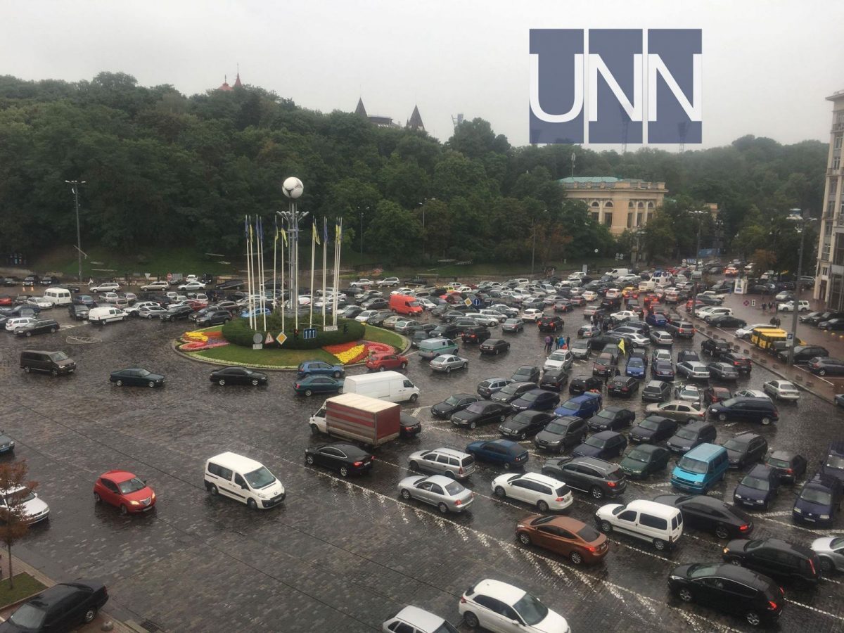 Центр Киева перекрыт водителями на «евробляхах«. Об этом сообщает УНН.