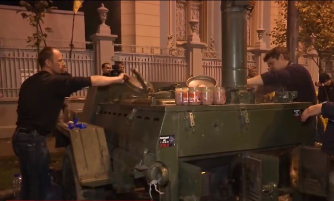 Одновременно с появлением баррикады заработала завезенная ранее полевая кухня – активистов кормят гречкой с тушеным мясом. Люди продолжают обустраивать временное жилье и устанавливать новые палатки. Депутатов среди тех, кто планирует ночевать на улице, пока журналисты не встретили.