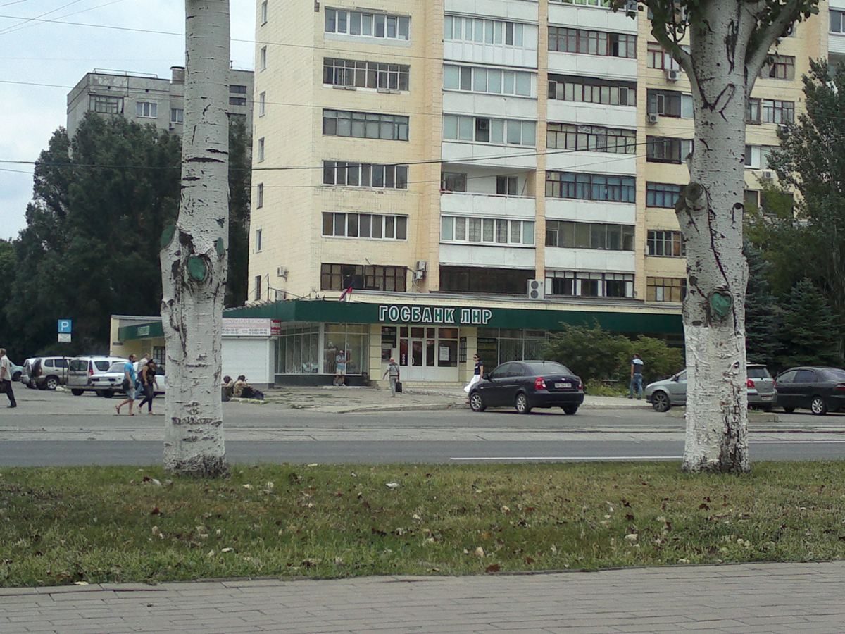 На месте бывших «Ощадбанка», «Приватбанка» и т.д. ныне открыт «Госбанк ЛНР». Абсолютный монополист экономической жизни республики: выдаёт зарплаты, пенсии, принимает платежи и т.д. Обещают открыть кредиты и депозиты, но когда это случится — неизвестно.