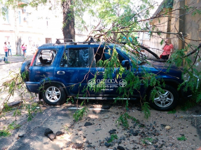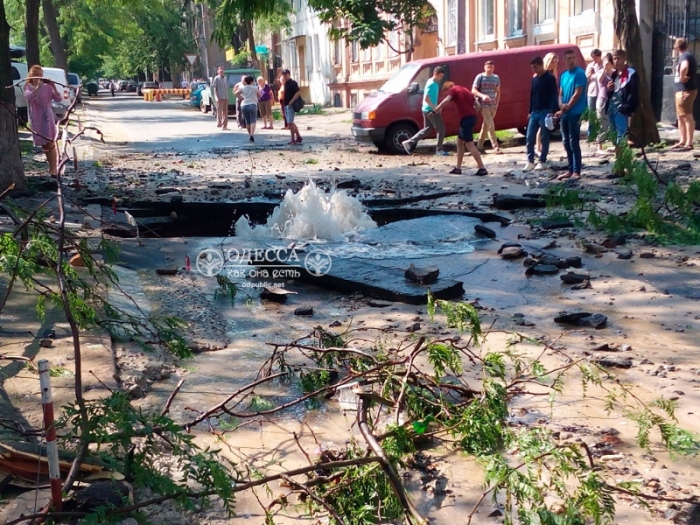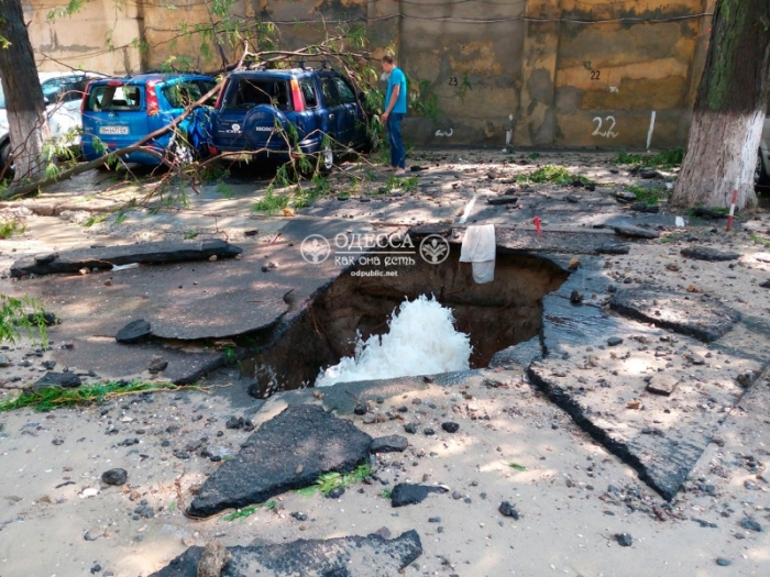 Разрушительный «фонтан» в Одессе: Напором воды снесло асфальт и ветки