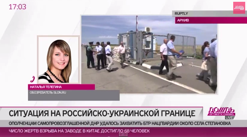 Она лично видела тяжелую технику, движущуюся в сторону границы. Таким образом, она подтвердила информацию американских источников о концентрации военной техники России близ границы с Украиной.