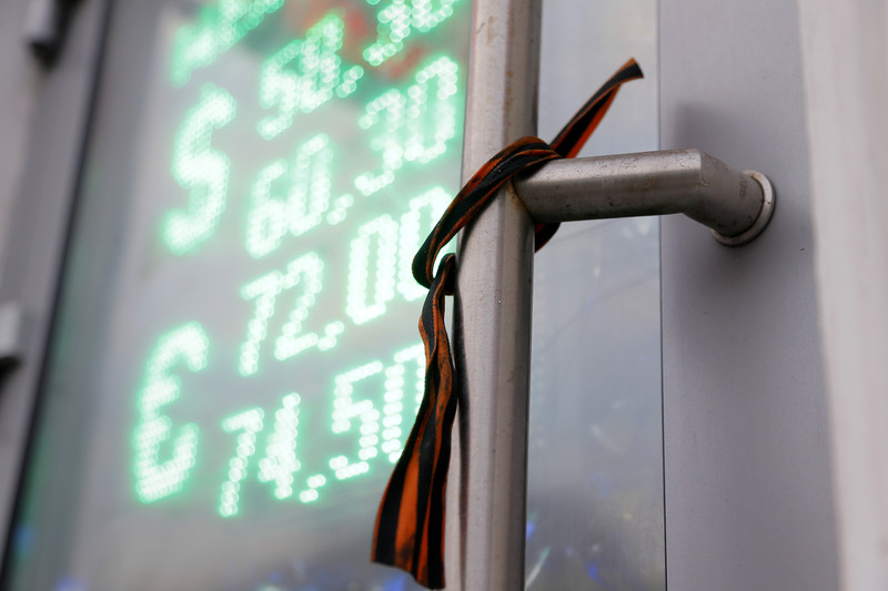 По курсу ЦБ на вторник, 16 декабря, доллар — 58,35 рубля, евро — 72,66 рубля. На 1 января 2014 года доллар стоил 32,66 рубля (рост с начала года — около 50%), евро — 45,06 рубля (рост около 40%). На уличных вывесках некоторых обменников также есть третья строчка, £ — 15 декабря он стоил уже в районе 95 рублей.
