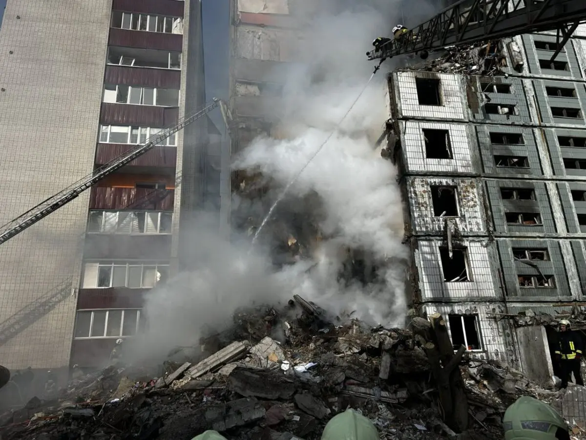 В результате попадания в жилом доме обрушился целый подъезд, под завалами находятся люди.