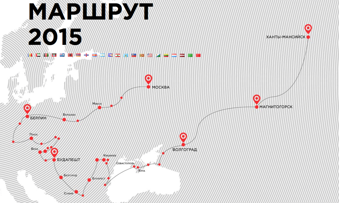 Маршрут автоэкспедиции включает в себя страны СНГ и Европы, которые участвовали в борьбе с нацизмом. Но, следует отметить, что маршрут не проходит через территорию Украины, не считая захваченного Россией полуострова Крым.