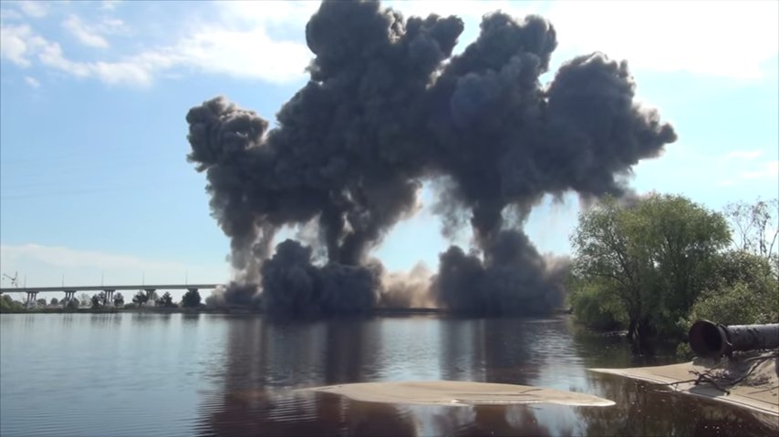 МЧС Беларуси взорвало аварийный участок моста еще 25 мая, зафиксировав это на видео.