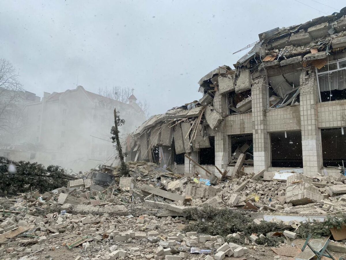 «Только что был нанесен ракетный или бомбовый удар, сейчас все равно, по 25-й школе. Но фактически половина школы разрушена», — сказал Сухомлин в видеообращении.