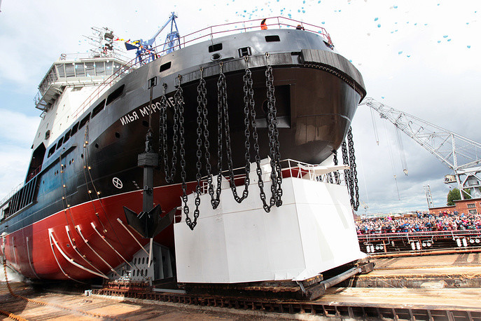 10 июня в российском Санкт-Петербурге спустили на воду ледокол «Илья Муромец» — первый за 45 лет ледокол, построенный для ВМФ России.