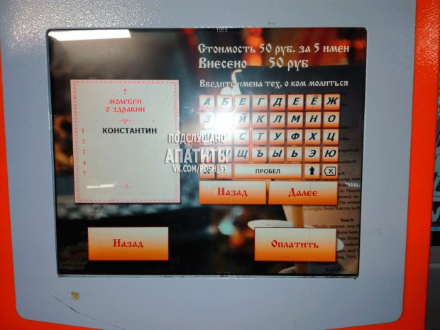 «Сегодня заходили в один из павильонов нашего города. И пока стояли в очереди, взгляд упал на терминал оплаты. Ну, терминал как терминал. Но справа в верхнем углу красуется значок. Подошли ближе и были в легком шоке. Значит теперь в данном терминале я могу поставить свечку за здравие и упокой и заказать молитву», – рассказала одна из местных жительниц.