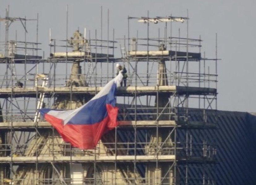 О том, подозревается ли кто-то в этом деянии, пока ничего неизвестно, но провисел триколор недолго. Тем временем, британские пользователи интернета встревожены. «Россияне вернулись», — пишут они.