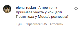 «Не спрашивали, как там пелось в Кремле на прошлой неделе?», «А про Москву чего не расскажет?», «И в России спела, и украинцам пощебечет, еще живет в Советском Союзе», — писали недовольные юзеры.
