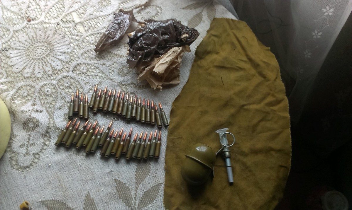 Во время обысков сотрудники СБ Украины изъяли самодельное взрывное устройство, гранату с запалом, шестьдесят патронов различного калибра и альпинистское снаряжение.