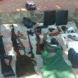 «Во время обысков правоохранители изъяли девять пистолетов и два револьвера разных систем, четыре незарегистрированных охотничьих ружья, автомат Калашникова, самодельный карабин, один килограмм тротила, 11 бронежилетов, балаклавы и большое количество патронов различного калибра. Также изъято 11 раций, три из которых дальнего радиуса действия, и другую военную амуницию», — проинформировали в ведомстве.
