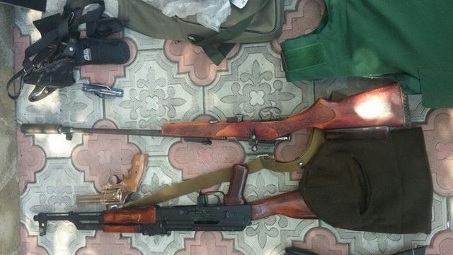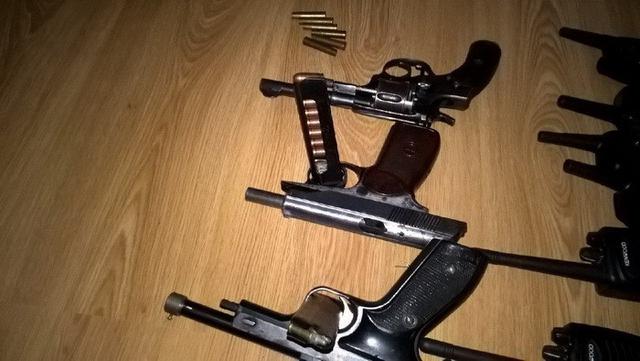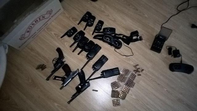 «Во время обысков правоохранители изъяли девять пистолетов и два револьвера разных систем, четыре незарегистрированных охотничьих ружья, автомат Калашникова, самодельный карабин, один килограмм тротила, 11 бронежилетов, балаклавы и большое количество патронов различного калибра. Также изъято 11 раций, три из которых дальнего радиуса действия, и другую военную амуницию», — проинформировали в ведомстве.
