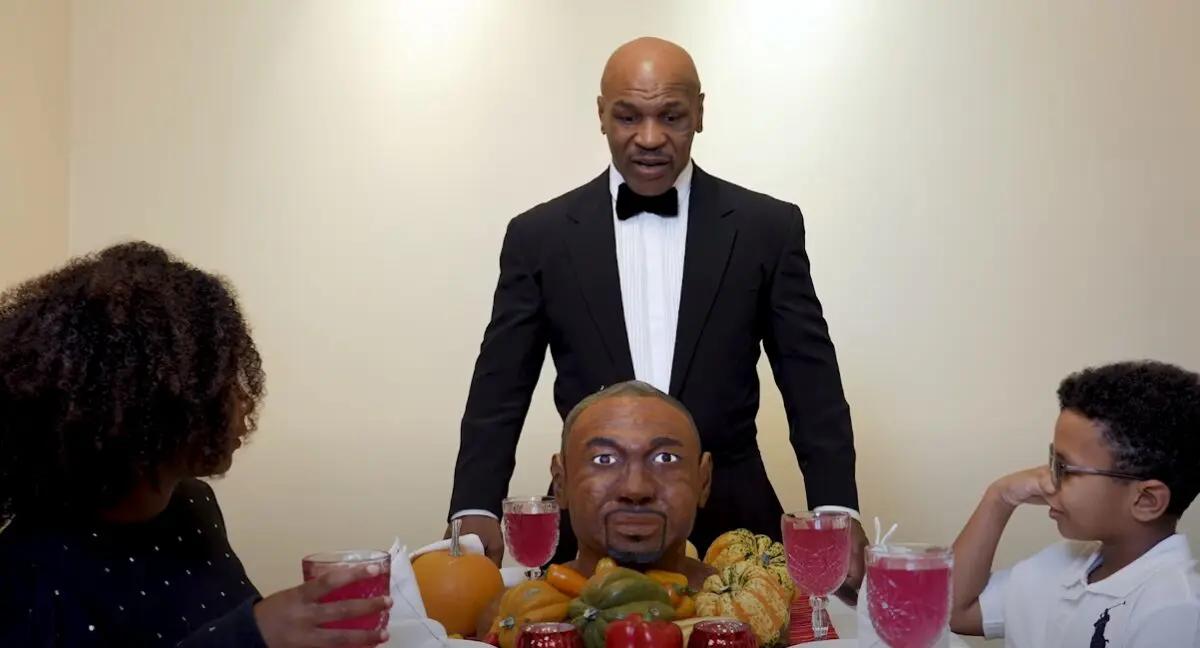 Тайсон видимо решил напомнить Джонсону, как в свои лучшие годы расправлялся на ринге с соперниками. Он снял видео, на котором вместе с семьей празднует День благодарения за обеденным столом, но вместо индейки дети едят съедобную «голову» Джонсона.