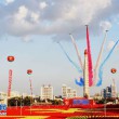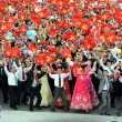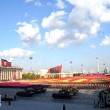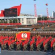 Парад принимал лидер страны Ким Чон Ын, который стоял на трибуне вместе с представителями командования вооружёнными силами и членом Постоянного комитета Политбюро ЦК КПК Лю Юньшанем.