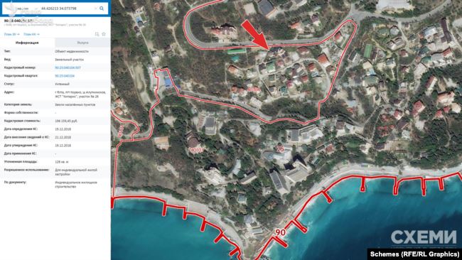 Журналисты отмечают, что Тупицкий еще до аннексии Крыма Россией в 2014 году владел имением и землей под ним в Кореизе возле Ялты. Но в 2018 году он расширил свои владения, оформив в собственность еще один участок возле дома. Об этом свидетельствует официальный документ, полученный «Схемами» из Единого госреестра недвижимости РФ. В июле 2018 года Тупицкий (на тот момент он был заместителем главы КСУ) оформил договор купли земли площадью 126 кв. м. у гражданина РФ Владимира Рисятова. В декларациях Тупицкого ни за 2018, ни за 2019 годы этот объект недвижимости не упоминается.