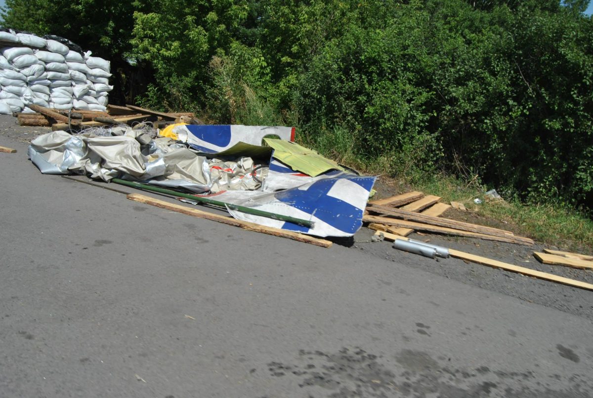 Силы АТО нашли обломки фюзеляжа самолета на одном из блокпостов. Фото