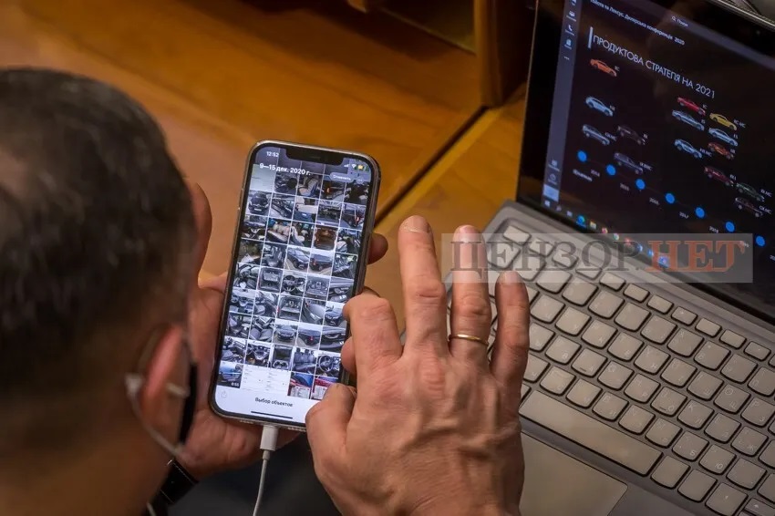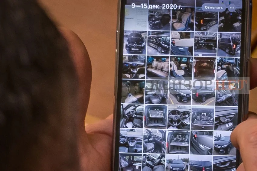 На фото, которые были сделаны на рабочем месте Семинского, он рассматривает внешний вид и салон автомобилей Mercedes на смартфоне. На ноутбуке, который стоит рядом, открыта страница с информацией о товарной стратегии автомобилей Lexus.