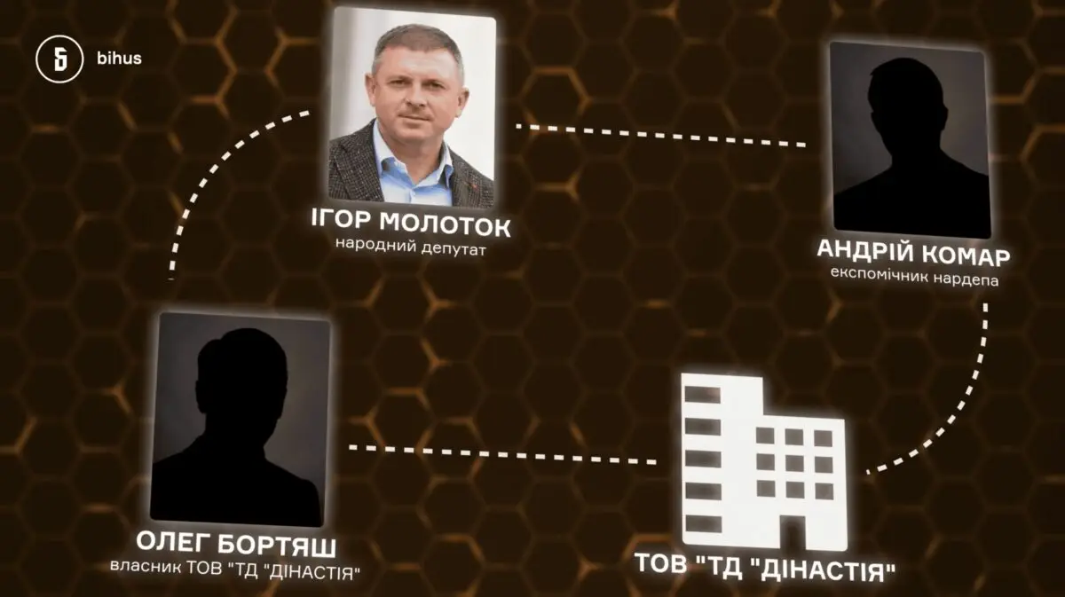 Около 126 миллионов гривен на обустройство оборонительных рубежей в Сумской области получила компания ООО «ТД «Династия». В частности, для этих работ она закупила на более чем 40 млн грн материалов у компании «Шостстройресурс». Эту фирму впоследствии записали на 90-летнюю мать нардепа Игоря Молотка. Как установило Bihus.Info, «Шостстройресурс» покупало материалы у производителя и перепродавало их ООО «ТД «Династия» с немалой наценкой.