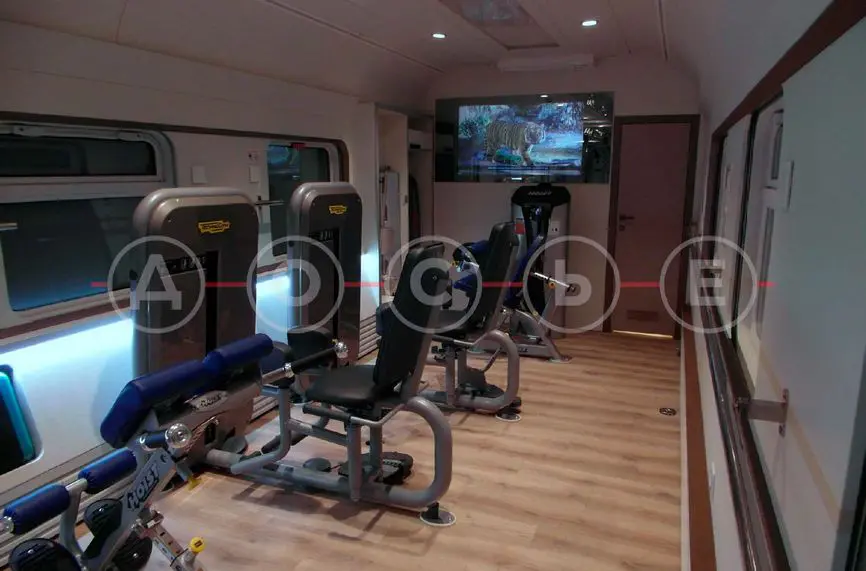 Внутри есть кабинет косметолога, тренажерный зал и даже хамам, а при необходимости в этом вагоне можно спасти жизнь человеку, поскольку установлено необходимое современное медицинское оборудование.