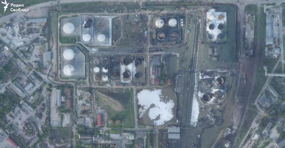 Нефтебаза в Феодосии, расположенная на территории временно оккупированного Крыма, подверглась значительным разрушениям. Об этом свидетельствуют спутниковые снимки, обнародованные «Радио Свобода».