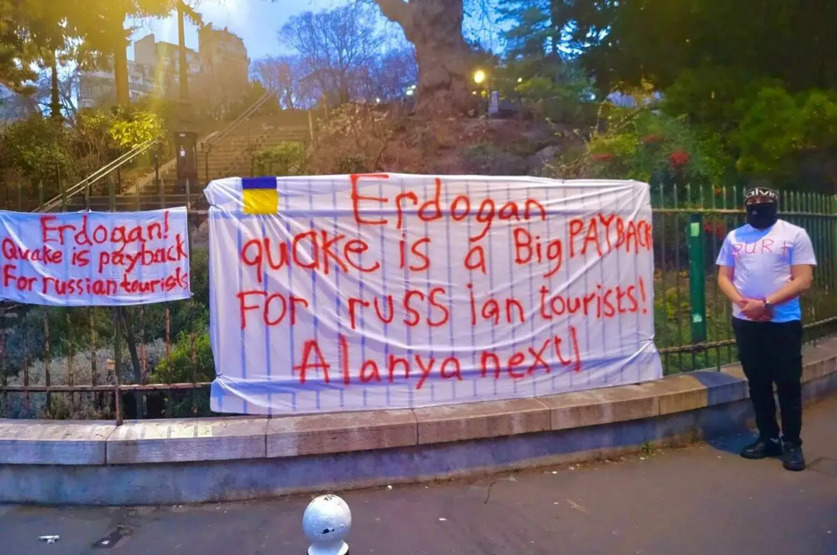 К примеру, 5 марта в Париже провели такую постановочную акцию. Якобы «представители украинского общества» развернули небольшой антитурецкий баннер и выкрикивали на камеру «Остановите Эрдогана!» Затем это видео появлялось в соцсетях.