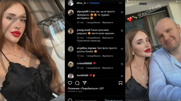 Кроме этого, журналисты проанализировали публикации Алины Левченко за сентябрь 2021-го года — они свидетельствуют, что в то время она с Торохтием находилась в Киеве. 27-го сентября Левченко опубликовала фото из своего дома в Киеве и совместное с Торохтием фото из столичного заведения «Веранда на Днепре».