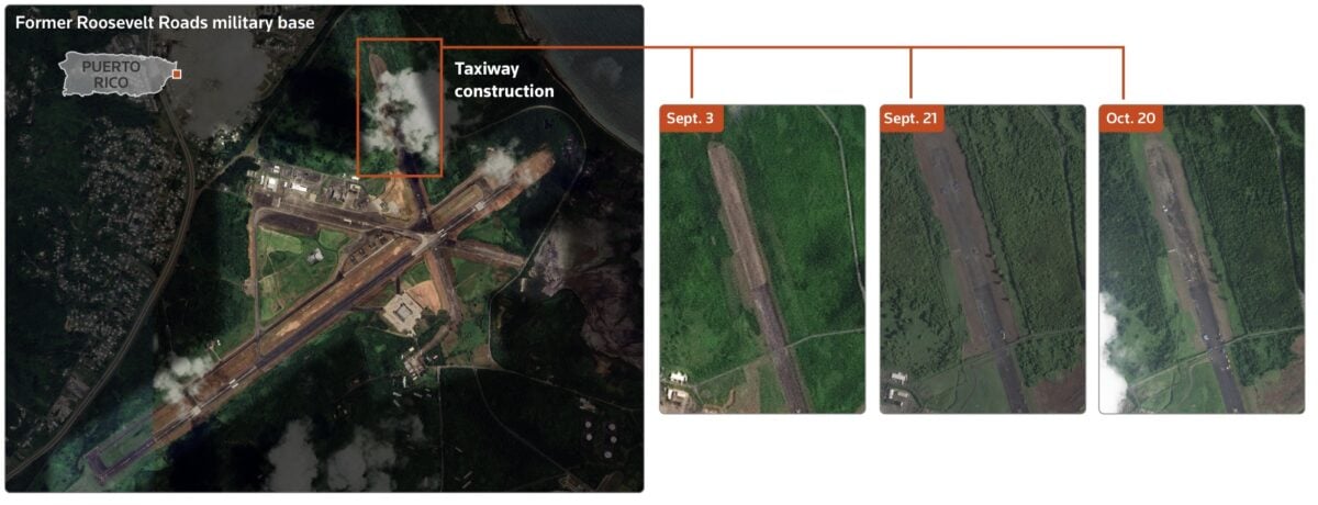По данным расследования Reuters, в сентябре 2025 года на территории бывшей базы «Рузвельт Роудс» начали расчистку и ремонт взлетно-посадочных полос. До 2004 года эта база была одной из крупнейших в мире, а ее расположение позволяет размещать значительное количество военной техники.