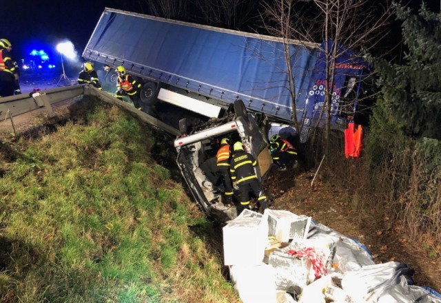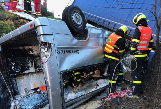Авария произошла в районе чешского городка Тршинец. Микроавтобус «Мерседес» столкнулся с грузовиком. Удар был такой силы, что оба автомобиля слетели с дороги.