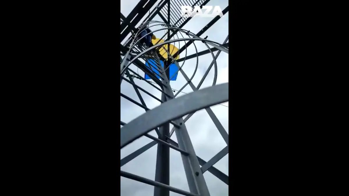 В Московской области России местные полицейские начальники приехали к опоре линии электропередач, на которую неизвестные повесили флаг Украины. Об этом сообщает Telegram-канал Baza.