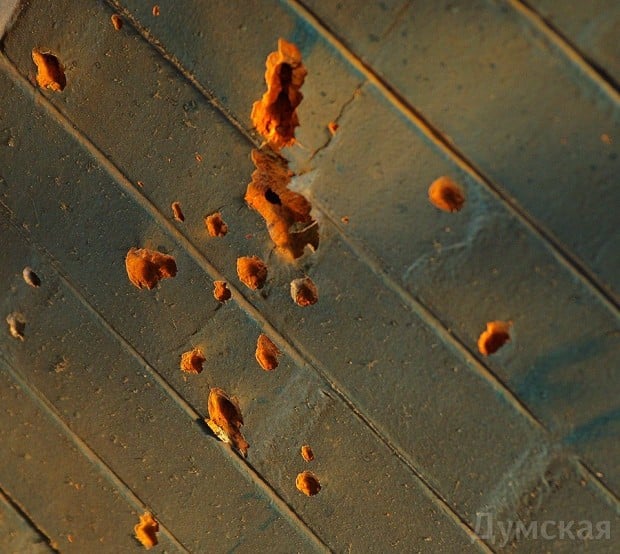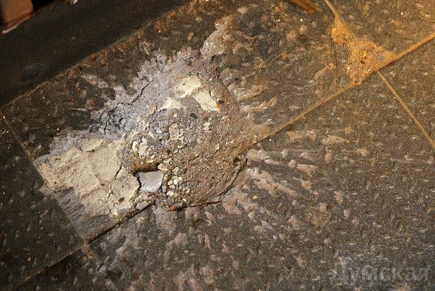 Помещение пострадало незначительно — следы взрыва видны только на двери и у входа.