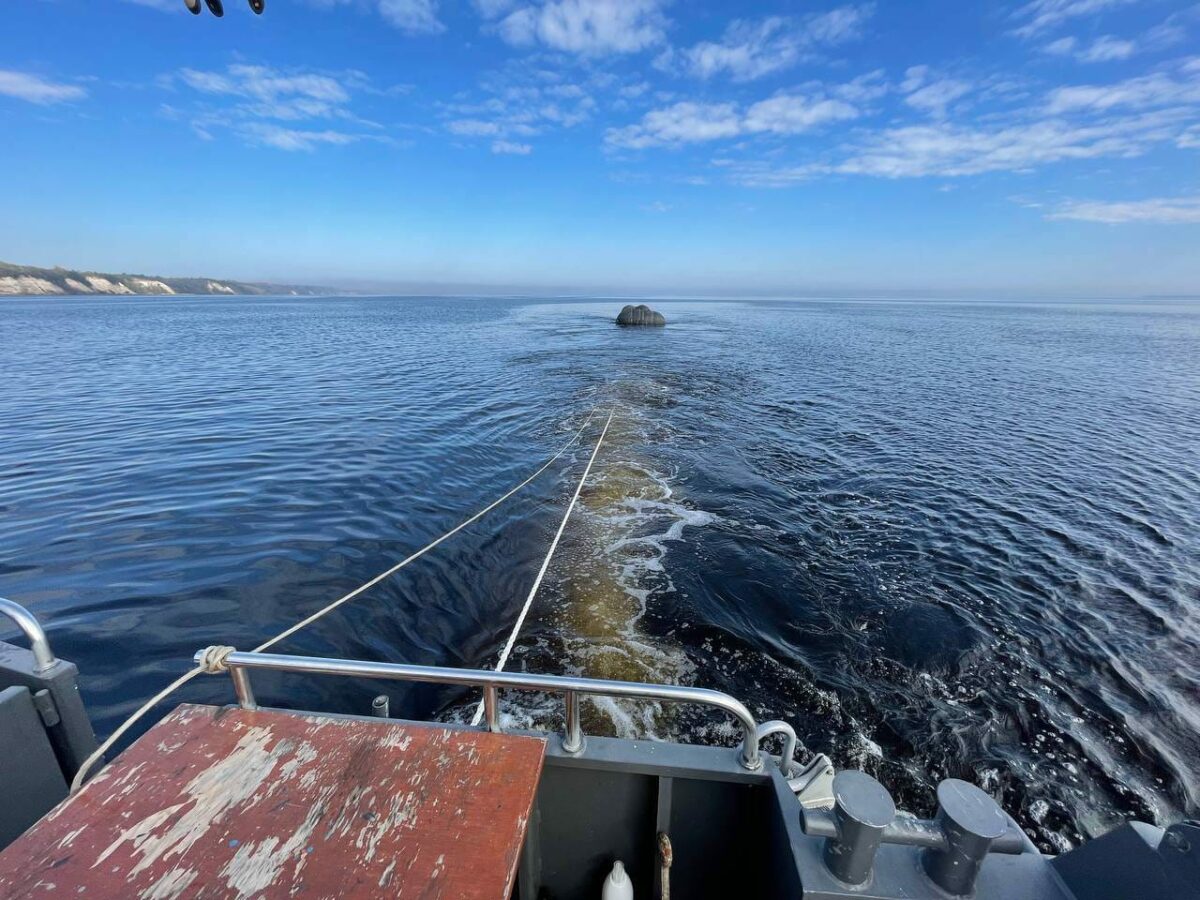 Затонувший вертолет пограничники отбуксировали с помощью катера морской охраны. Впоследствии очередное доказательство военных преступлений России в Украине подняли на сушу.