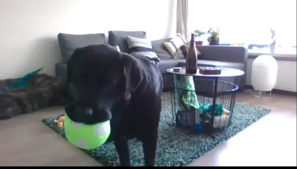 Устройство запускает видеозвонок, когда пес играет с мячиком. Хозяин может принять или отклонить звонок. Если он решил ответить, то собака увидит изображение хозяина на ноутбуке и услышит голос.