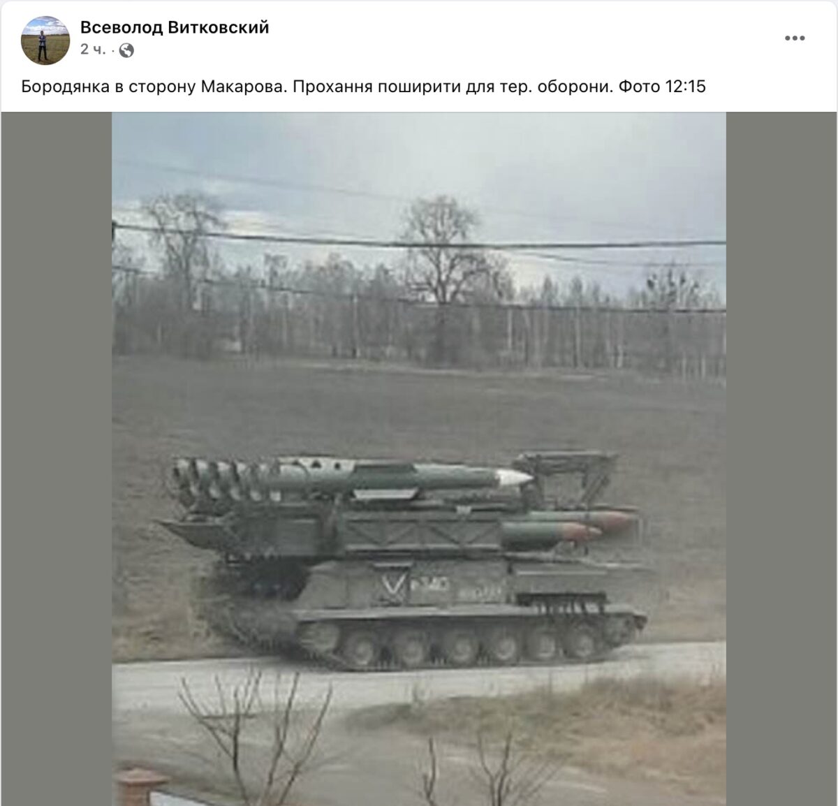 Россия перебрасывает к Киеву зенитно-ракетный комплекс «БУК» М1-2. Соответствующее фото опубликовал Всеволод Витковский, после призыва МВД сообщать о передвижении техники с буками «V».