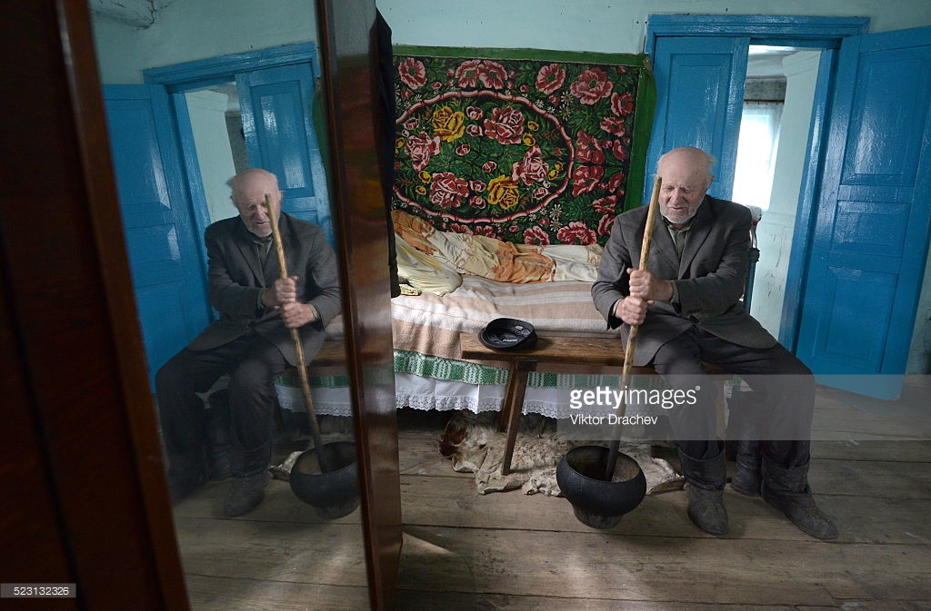 12. А это самосёл по имени Иван Иваныч Семенюк, он живёт на украинской территории Зоны, в брошенном селе Парышев. Иван Иванычу сейчас 81 год — он вернулся в родную деревню вместе с своей женой Марией в 1987 году, год спустя после аварии на ЧАЭС.